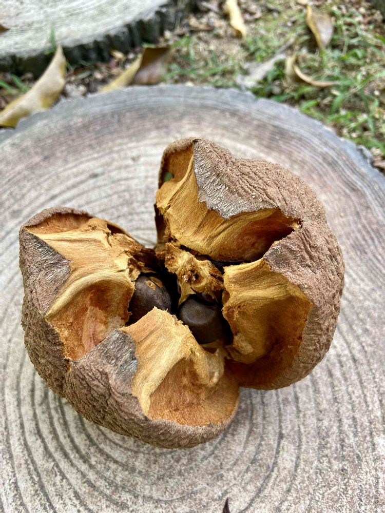以前紹介した「香港で発見された木が紅いツバキ」カメリア・クラプネリアーナ。直径10センチを超えた大きな実がやっと落ちたのを発見❣️お花や木はタグ🏷️から見てください❣️