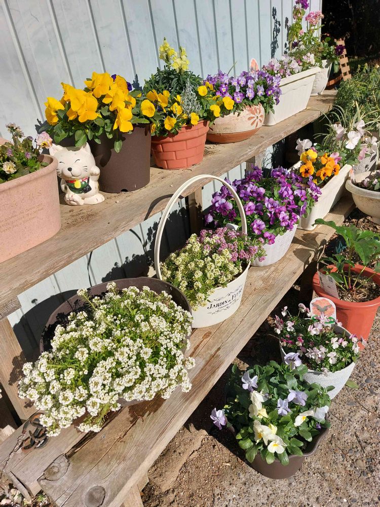 家で一番の日当たり場所☀毎年定番のお花を、並べています🤗🌸