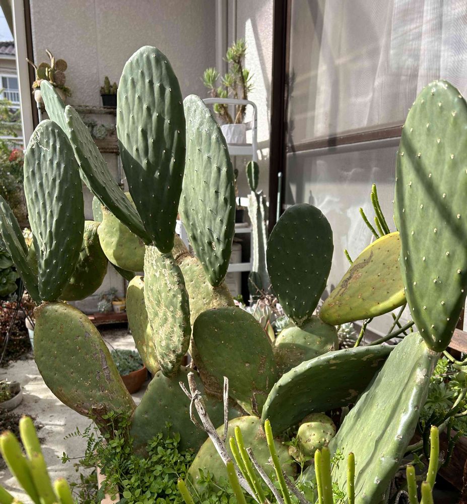 鉢植えの食用サボテン・ノパルです。早いもので、お迎えして5回目の冬を迎えました。案外寒さにも強いようです😆