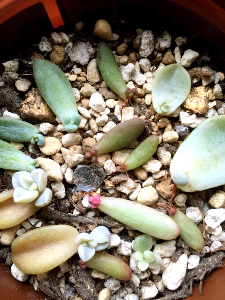 たまに多肉ちゃんによって葉挿しの芽がピンクっぽい子いますよ❤️水分少なめなのかなー?わからないですが😅
