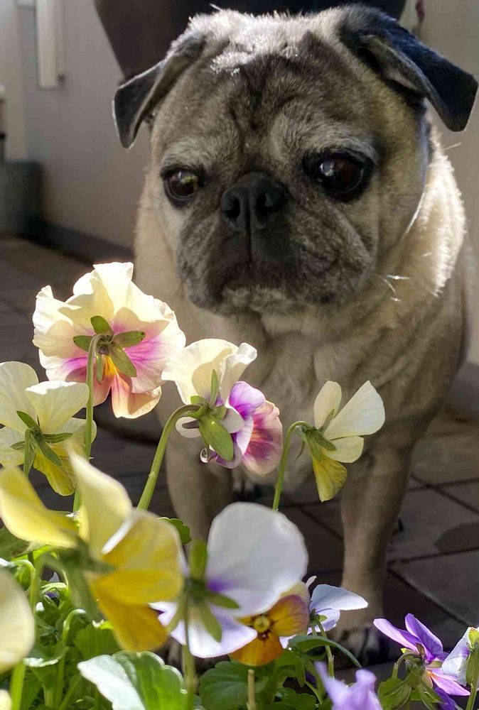 一瞬お花を愛でているように見えました💕