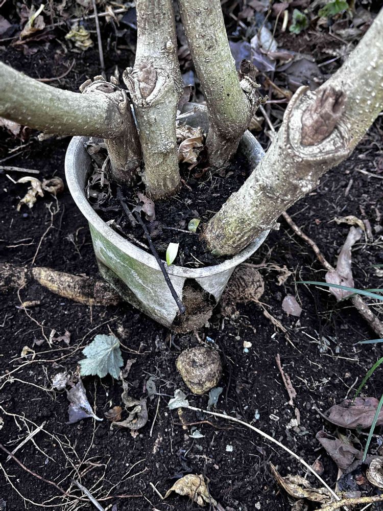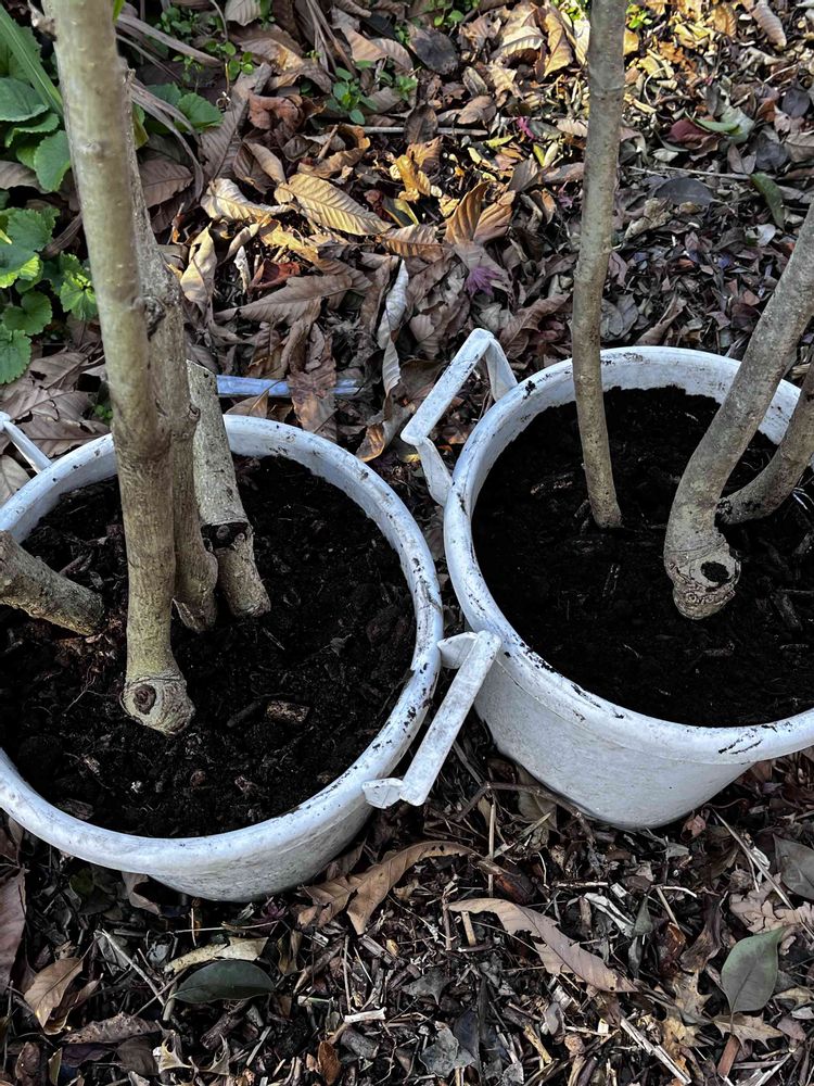 このムクゲ2鉢を処理しないとアジサイが掘れませんでした。