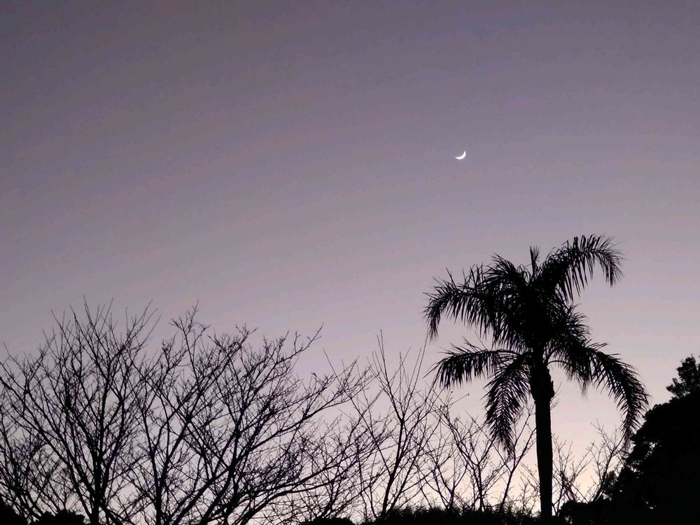 日が沈んで段々と暮れていく空に、綺麗に三日月🌛(本当は昨日)が浮かんでいたので撮ってみた🤗