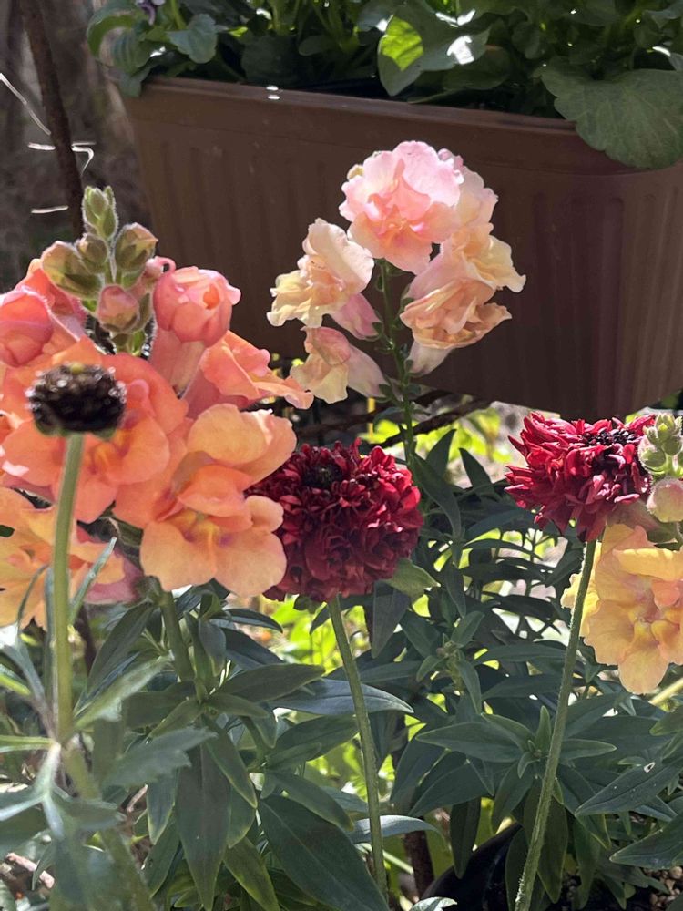 ラナンキュラス ルージュルージュHCでお買い得だったルージュルージュ♥️♥️濃い赤と合う色はなかなか難しいけど、種蒔き金魚草トゥイニーの派手目なオレンジ🧡❤️とよく映るのでコラボしてみました✨✨