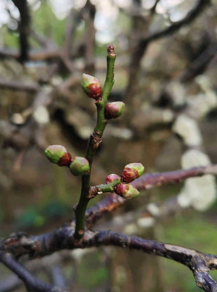 太宰府の飛梅は開花🌼我が家の梅はまだまだ…でもこの数日でちょこっと膨らんできた👏年明け早々手術して右だけ白内障が改善👁️…空の色がきれい✨来週、左も手術👁️青空バックの梅の花、楽しみー🤗