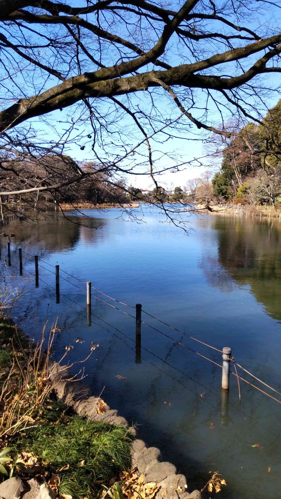 広くて綺麗な公園で、水に映る空も青くて、鴨たちが泳ぐ波紋が水の上でキラキラと光って、とっても美しい風景でした。