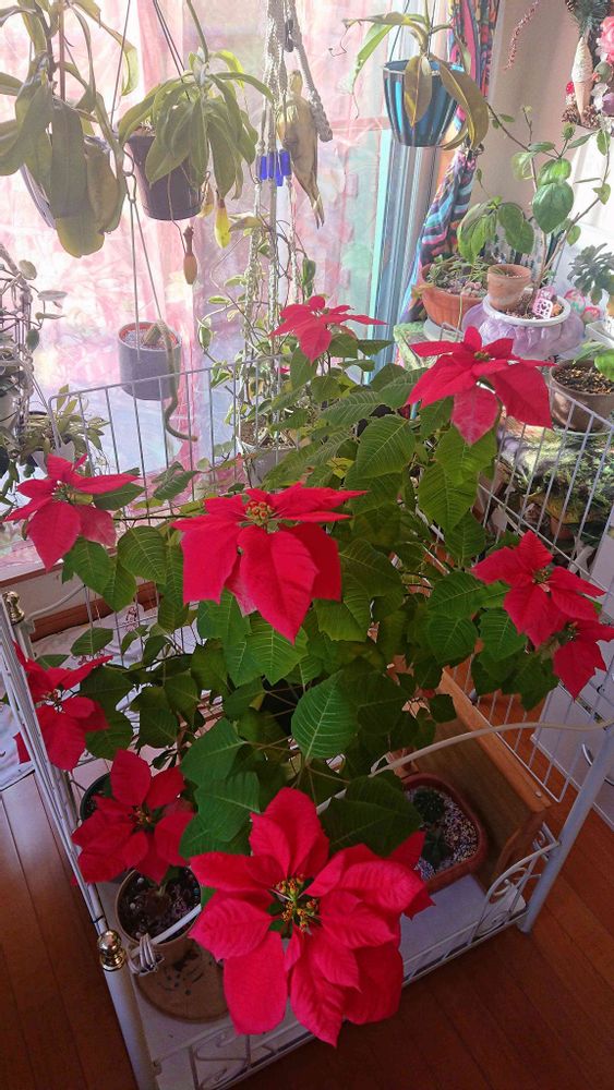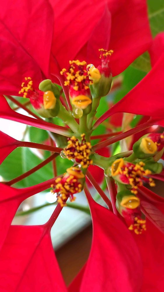 三年目のポインセチアさんのお花が咲きました(///∇///)👏🌼