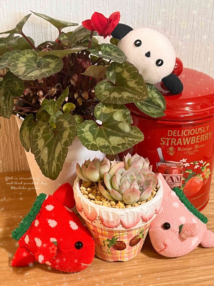 みたりんさんのこの鉢、ペコちゃんの方側を出しても🍓には違いないからいいんだけど、裏の🍓🍓も見て〜💕って気持ちになりましたよ☺️