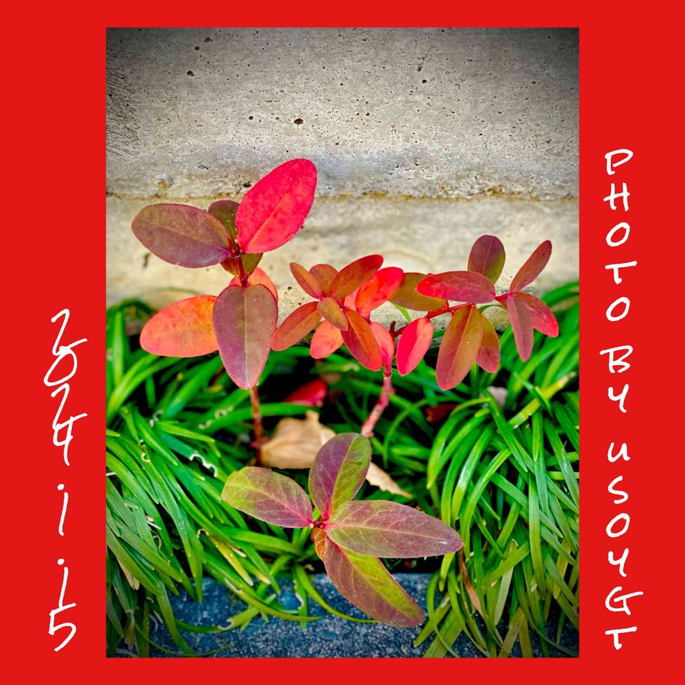 テーマ「紅葉①」…10月に金糸梅を挿木…発根…紅葉…夏の開花が楽しみです🤗