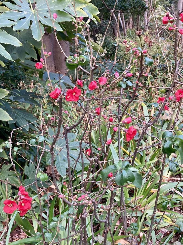 東京ガーデンテラス紀尾井町 光の森で目を引いた真っ赤な「ボケ」の花。