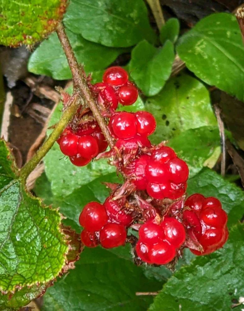 赤く熟したフユイチゴ美味しかったですヨ😋🎶