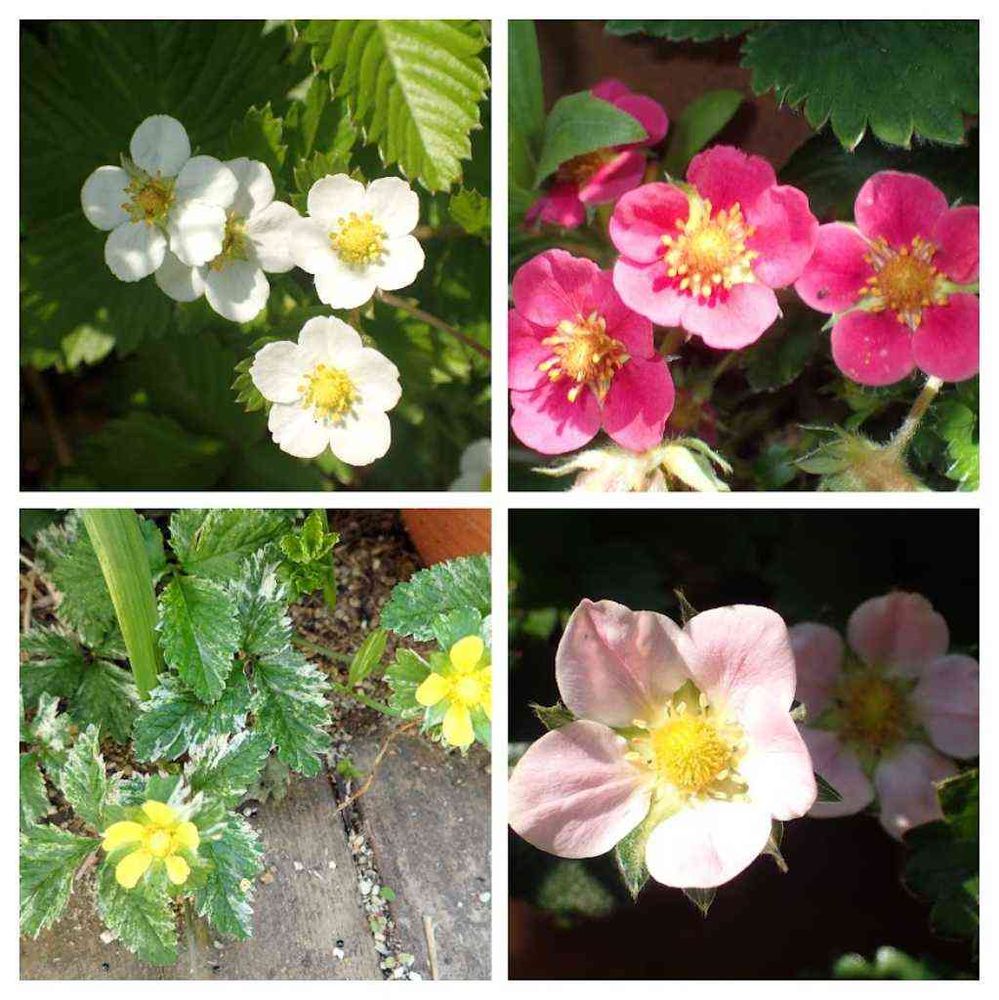 今は咲いてないので、過去写真から~赤花、ピンク花はいずれも四季なりのイチゴで、お花も観賞出来て実もそこそこ大きくて食べられる品種です😊