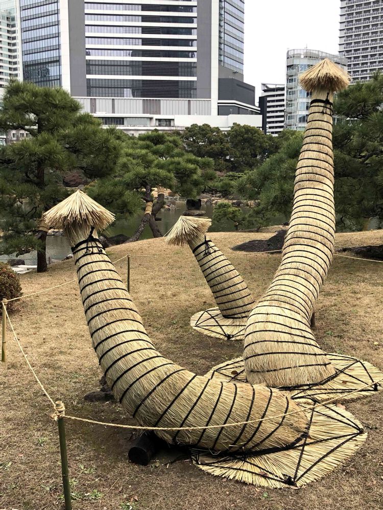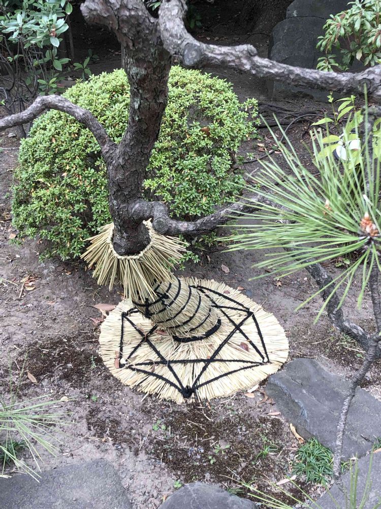 コモを巻く事で霜から守る為の技法だそうですがこの様に仕上げる庭師さんの技は凄いですよね!