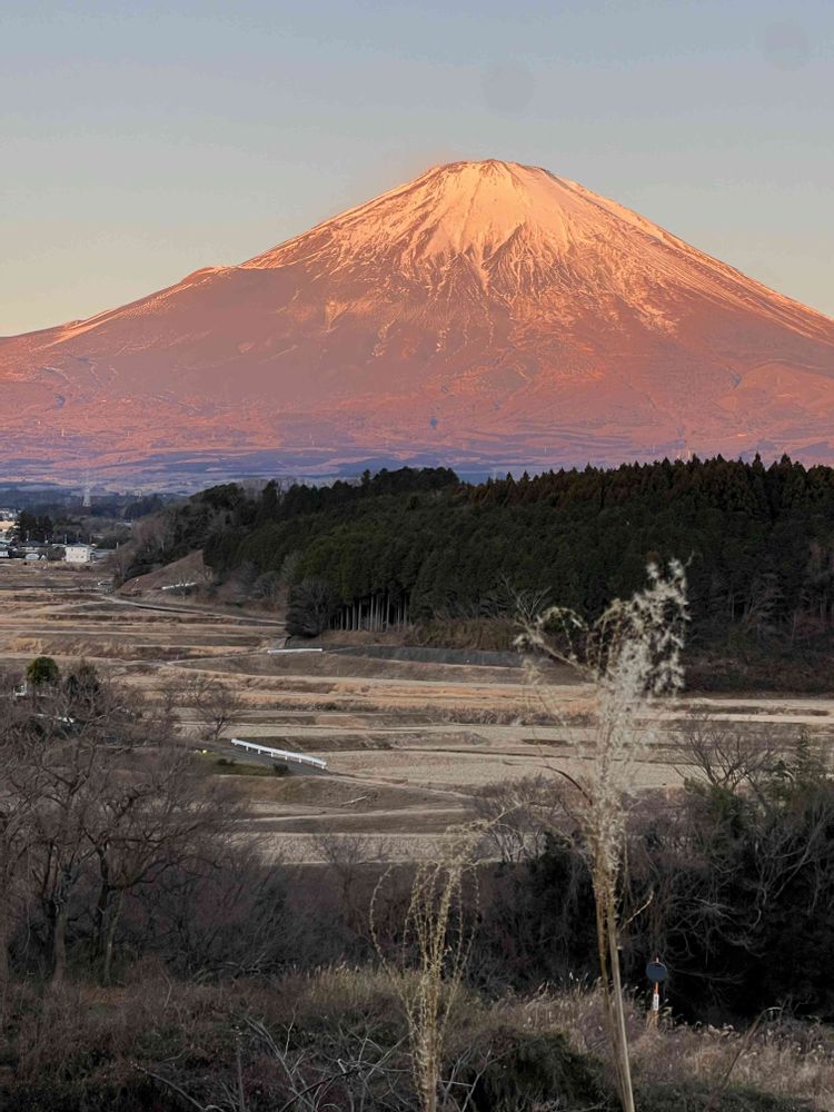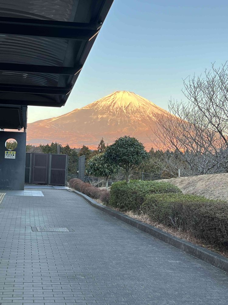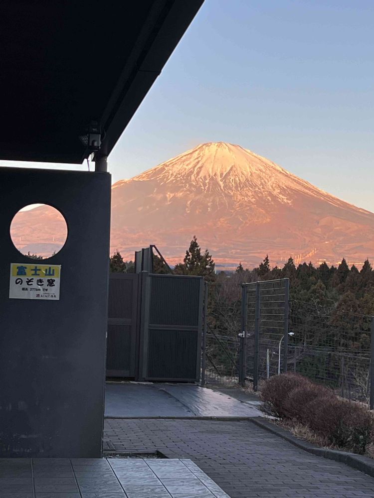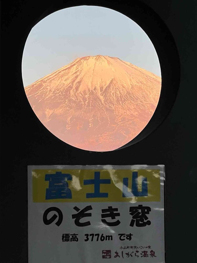 朝焼けし始めた富士山,のぞき窓のある温泉入り口,小山町足柄温泉アプローチの投稿画像