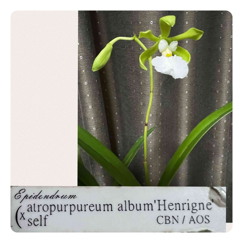 メイさんのエピデンドラム アトロパープレウム var.アルバム'ヘンリギュー,洋ラン,おうち園芸の投稿画像