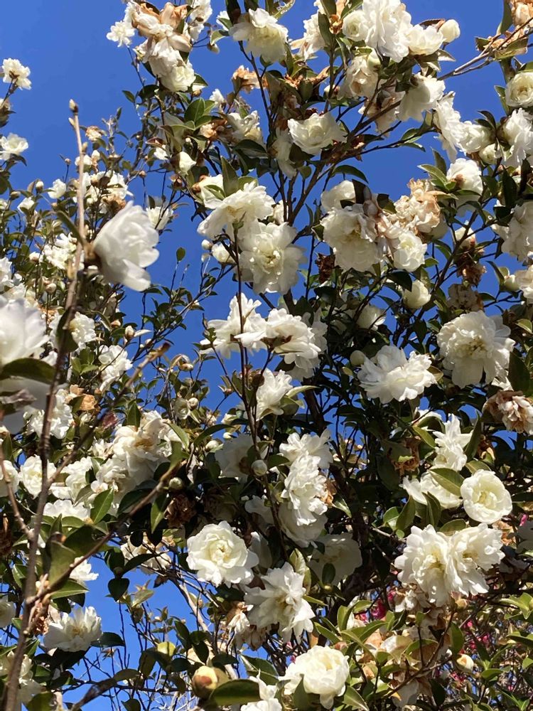 白い山茶花を見てるとトシちゃんの懐かしい歌🎶思い出しました😄