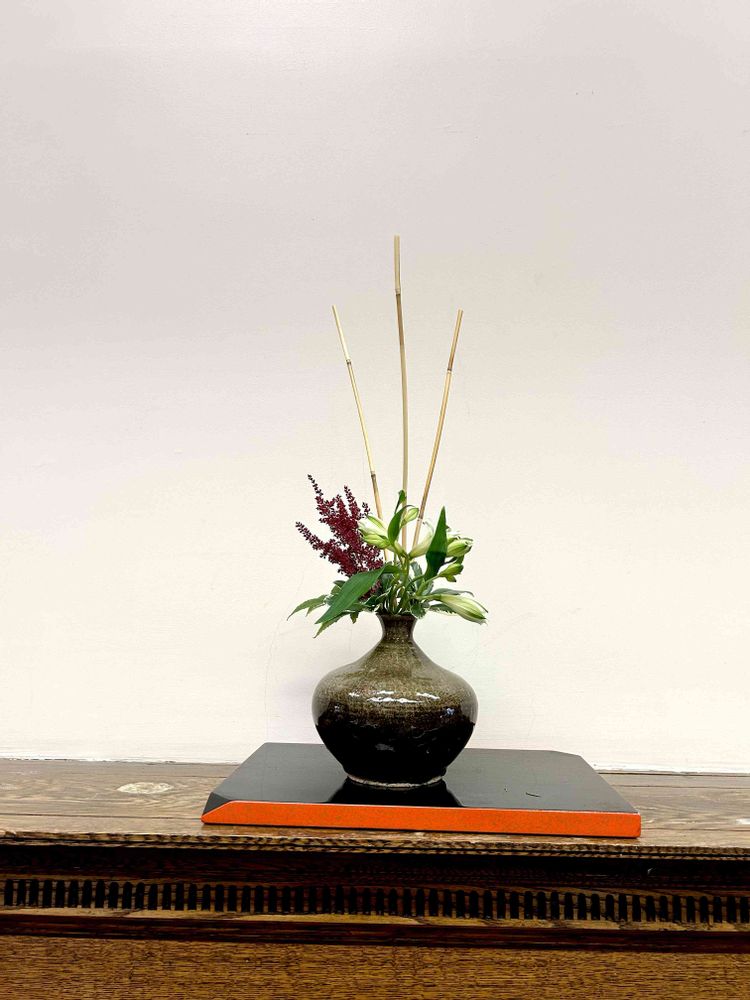 お稽古の後、図書館用に生けました。外は氷点下二桁の極寒です🥶寒いので高齢の生徒さんはお休みです。アルストロメリアは寒さにとても敏感で、移動中はしっかり防寒対策が必要です。新聞紙で巻いてホチキスで留めバケツに入れた上から大きなビニール袋を被せます。