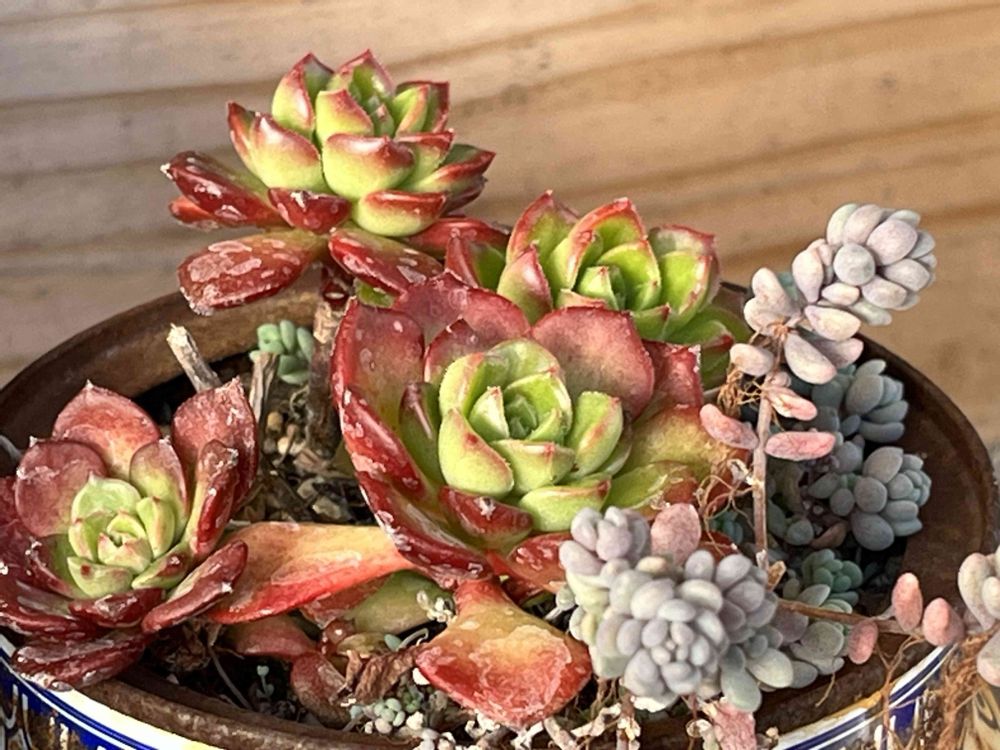 わぁ💦多肉ちゃんたち、寒さにキュッと耐えてますね😌