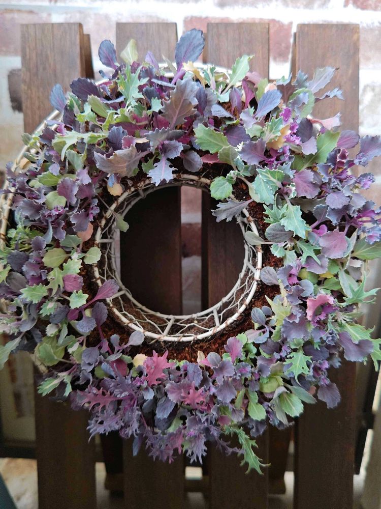 皆さんの4ヶ月経った葉牡丹リースの投稿を見て🤭慌てて、落ちた下葉を取り除き、減った土を足し•••液肥をあげました(今回は今も液肥あげてます)。