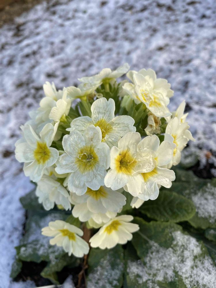 「初雪で薄化粧しちゃった!」by ガーデンプリムラ。