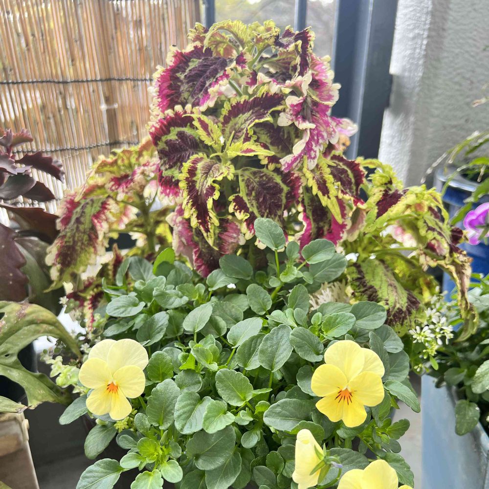 家のベランダに咲くビオラとコリウスです。