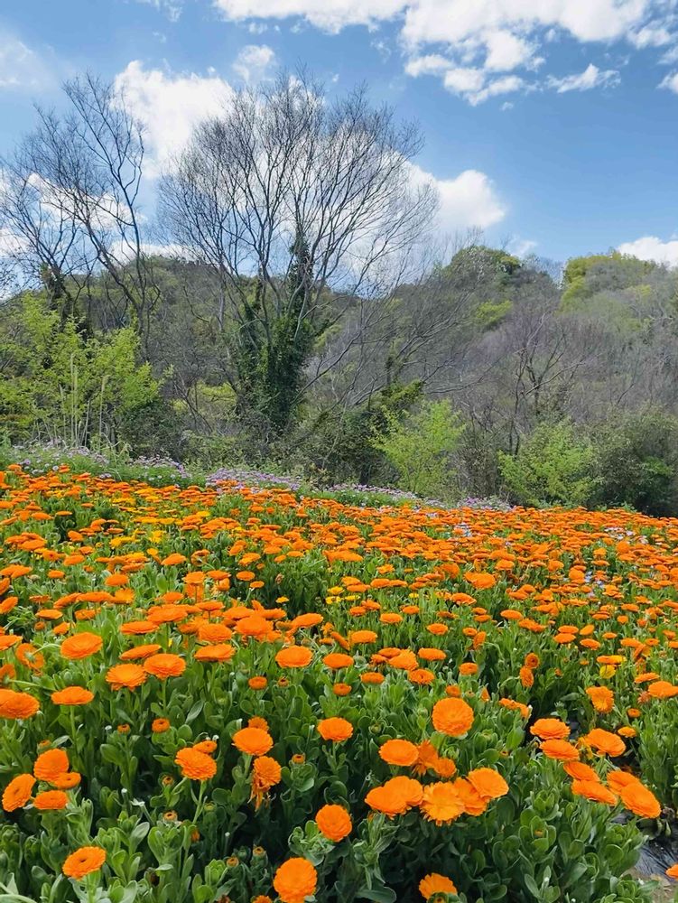 キンセンカがこんなに咲いてる島ですか。空の青さも素敵です。瀬戸内はやっぱりいいですね。お金貯めてまた行きたいです。オリーブハマチも食べたいし。