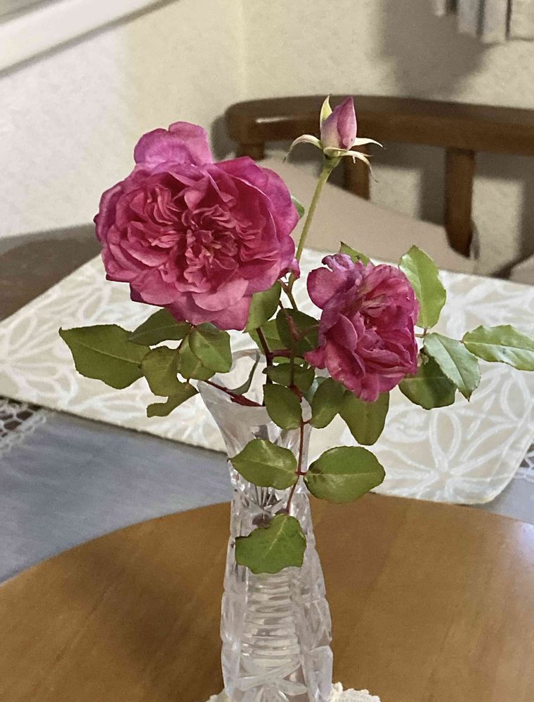 ③🌹アルシディックジョセフが頑張って咲いてましたが、✂️してダイニングテーブルに、癒されます💕