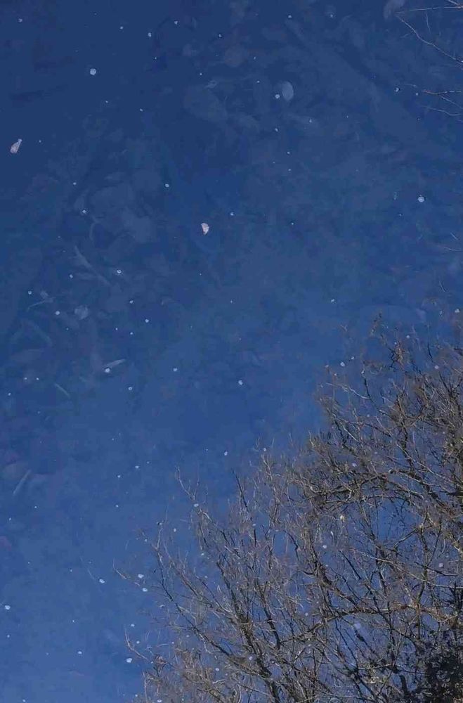 と、言いたい所ですが、これは2つ前に投稿した川の水面の写真です。木は反射して写っています😄その時はラブラブカップルの鯉が撮れなかったので今日新たに撮ってきました。良く見えないので切り取りました😄今日はうまく撮れましたよ😉拡大して探してね😉