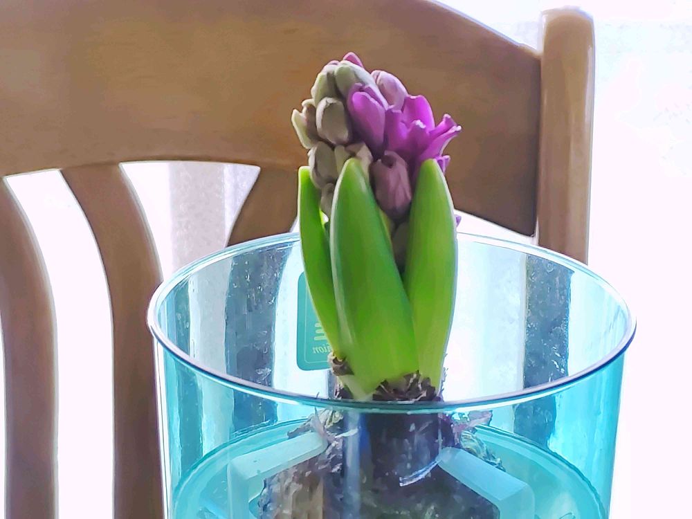 開花し始めたヒヤシンス、半分咲いて半分は開花待ち(pic1枚目、2枚目)