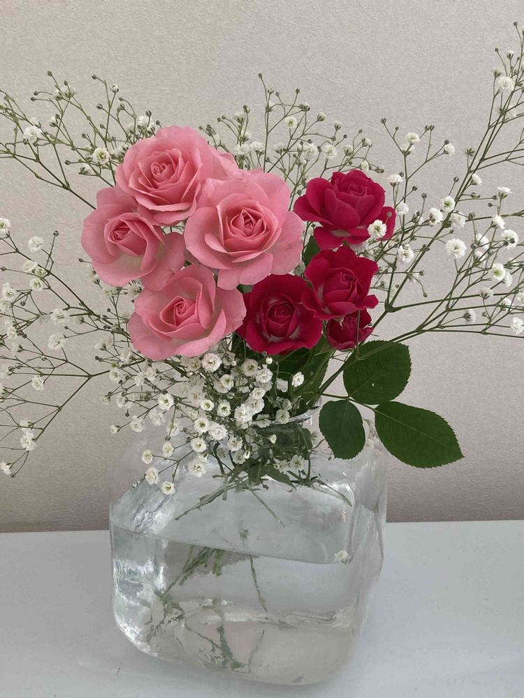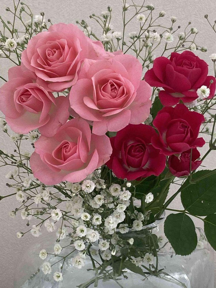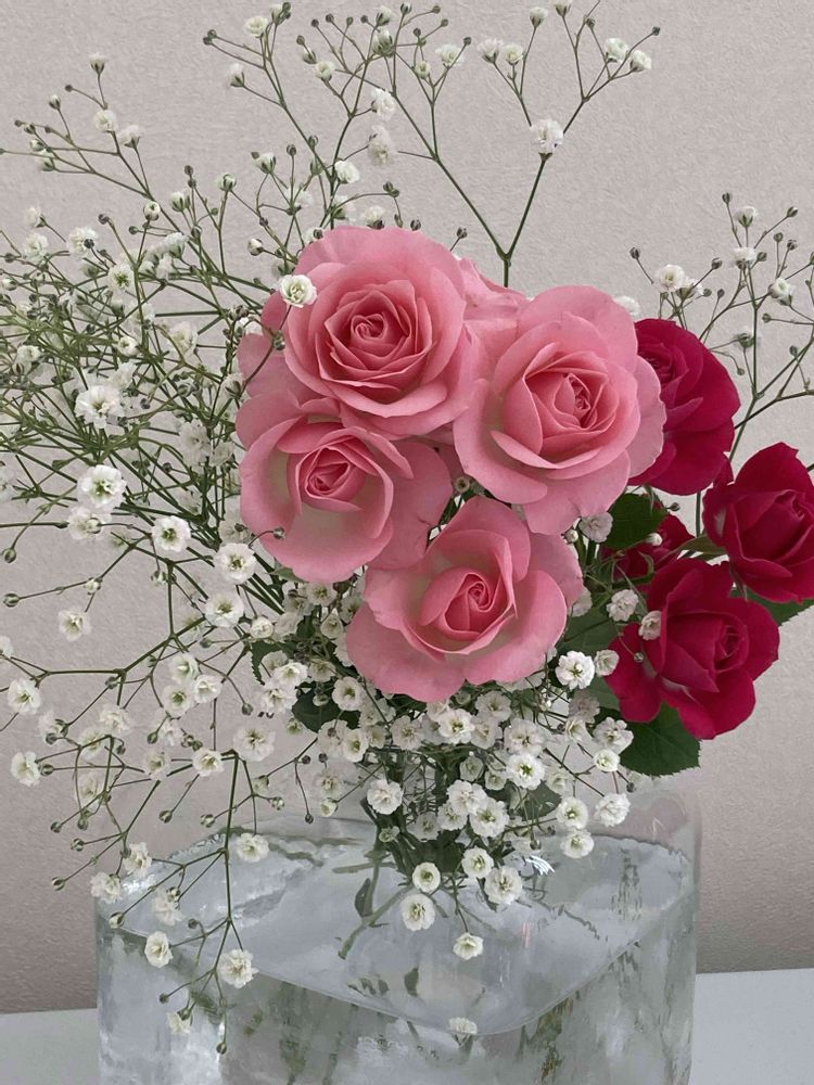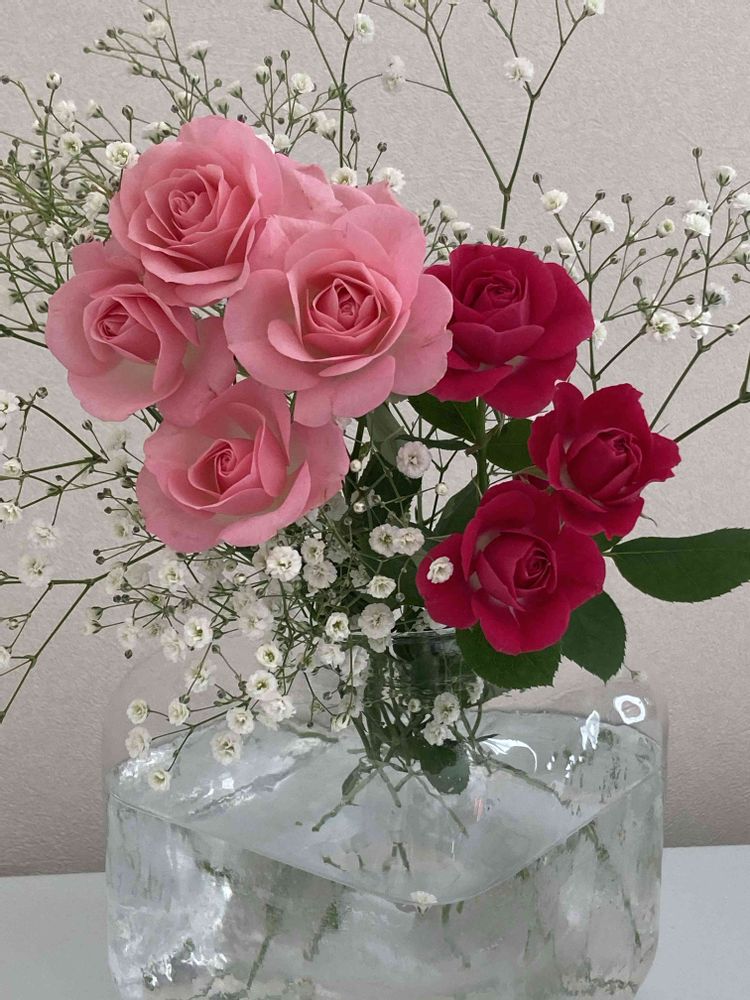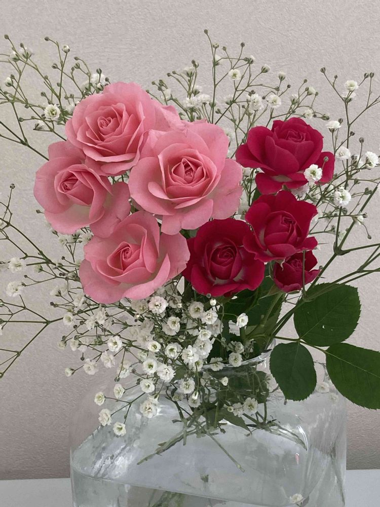 スプレー薔薇🌹とカスミソウは、爽やかな可愛さのコンビですね〜💓🌱