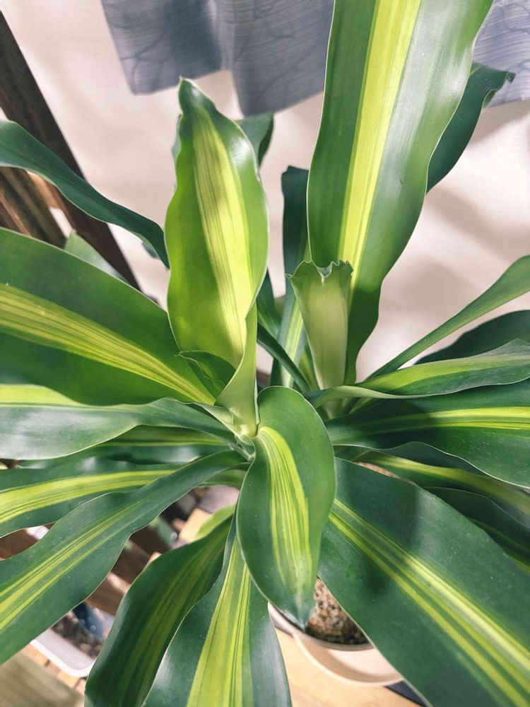 ドラセナのこの作り物みたいに綺麗な葉っぱってすごいよね✨