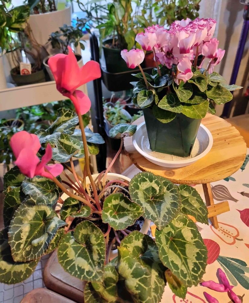 ミニシクラメンは今はリビングに連れて来たのですが、普段は寒い場所に置いているのでまだまだ綺麗に咲いています💓