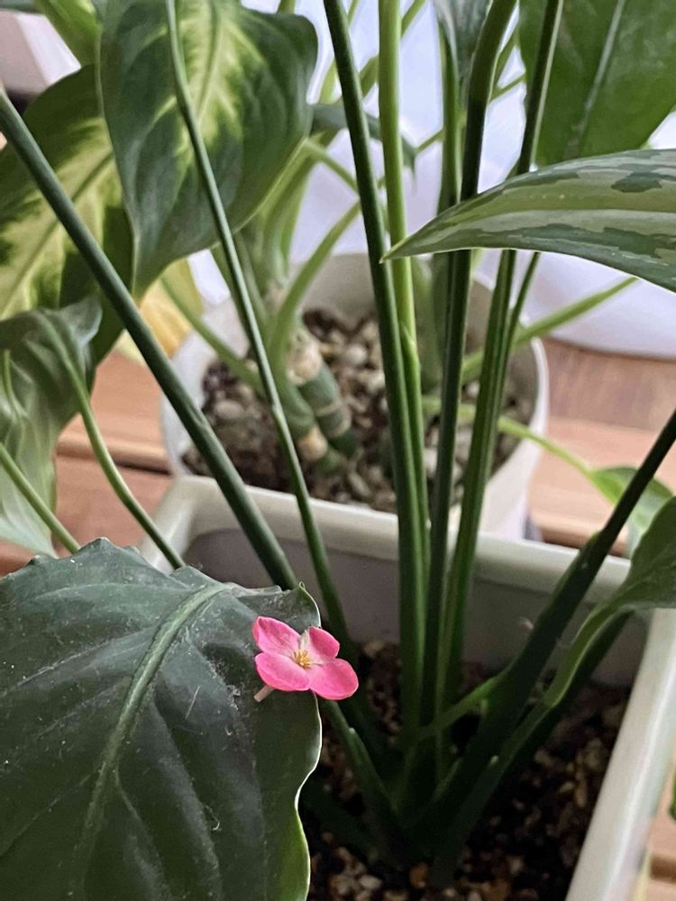 右横からはアグラオネマの葉っぱだけのぞいています