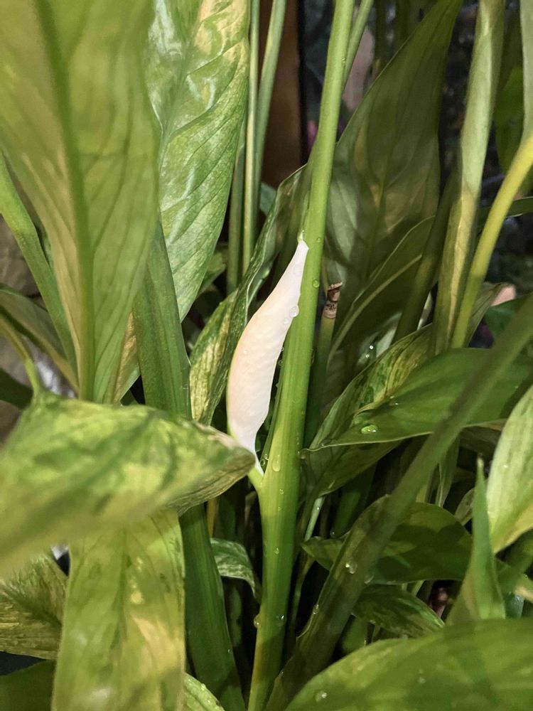 斑入りのスパティフィラムからも