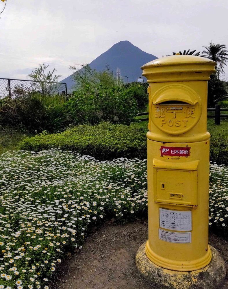 ピンクと黄緑ポストは、指宿の道の駅にあります。