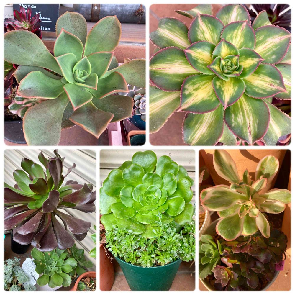 アエオニウム、並べると楽しいですね。新品種のシエナは、寒さに強いらしいですが、アエオニウムは比較的寒さに強いと思います。買い物途中の家では、軒下てはなく、屋根のない外で、黒法師が元気に日差しを浴びて輝いていましたよ。