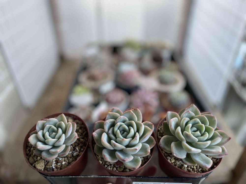 ベランダ多肉に朝のあいさつ( ˶˙ᵕ˙˶ )