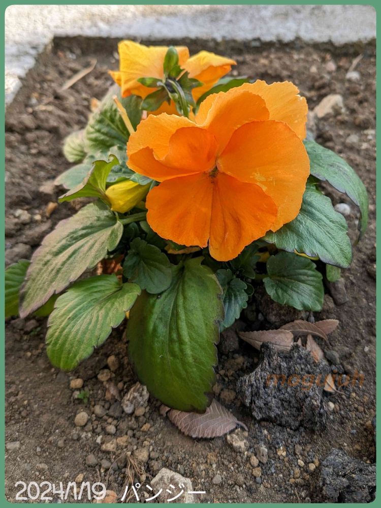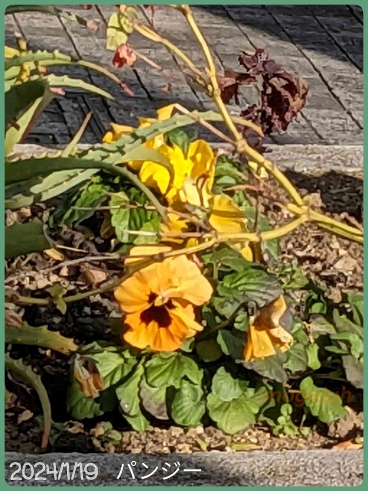 同じ花壇に咲くパンジー。