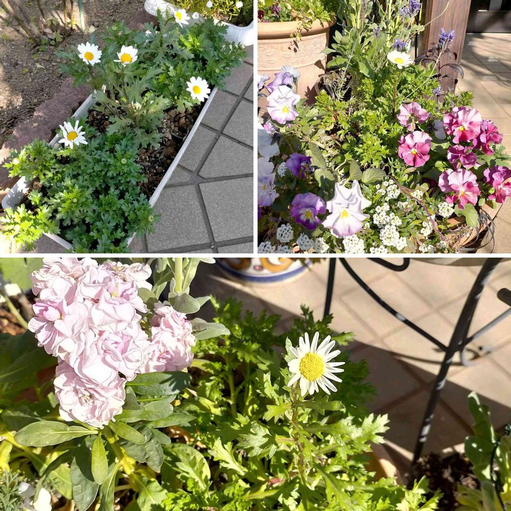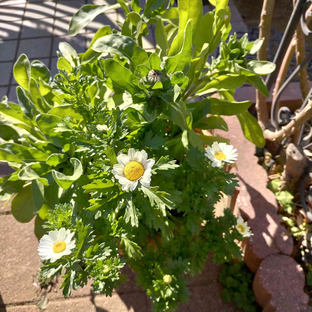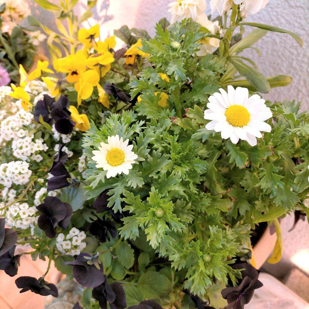 今日のお花、ノースポール。うちのはスノーランドですが、種まきからなのでたくさん植えてます😊 まだ咲き始めたくらいです。ハンギングにもしていますが、うどんこ病になっちゃってるのもあって、この後どうなることやら😔