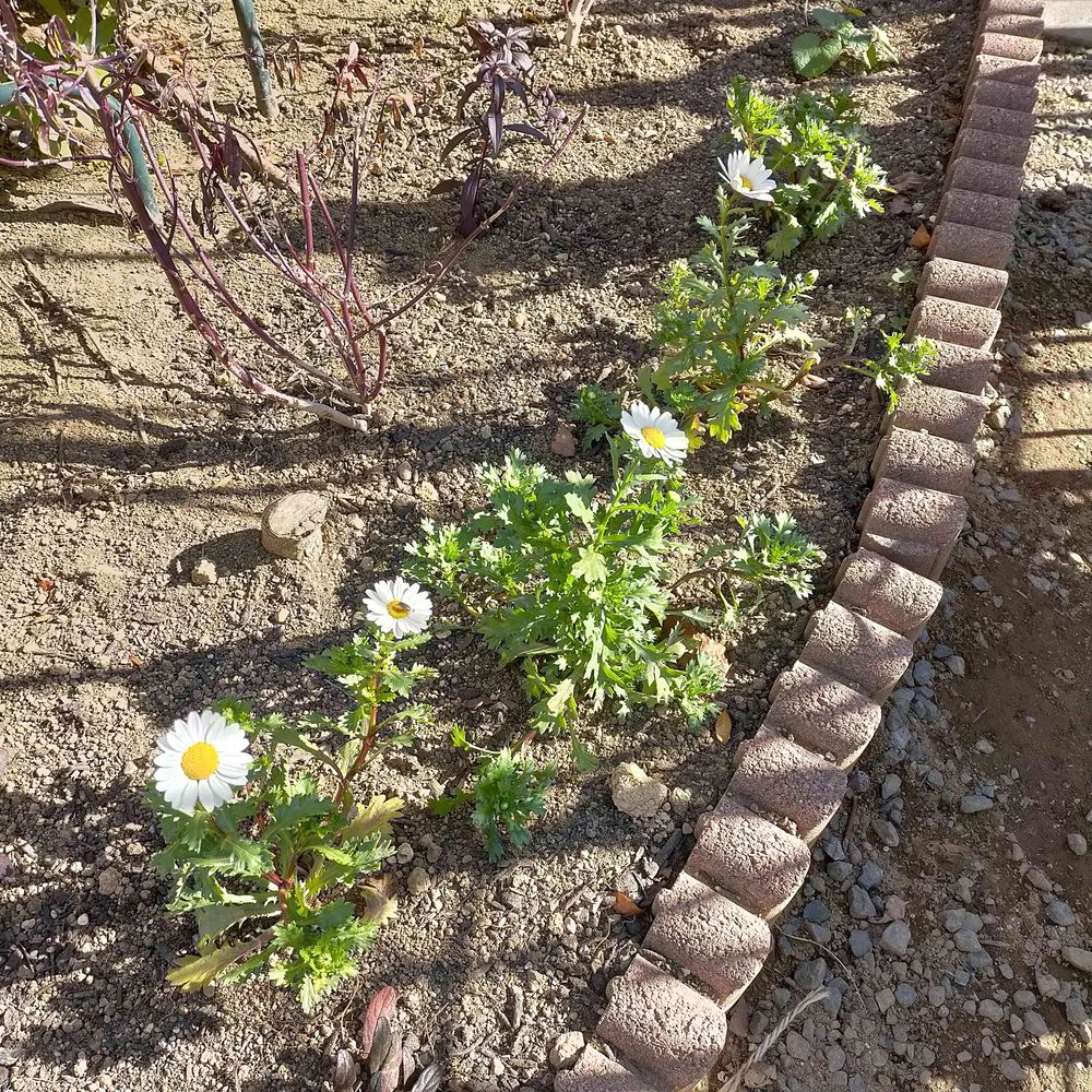ノースポールと言った方が覚えがいいですが、ノースポールはサカタの品種名だから、花の種類としてクリサンセマム・パルドサム、またはレウカンセマム・パルドサムと表現した方がいいのかな? うちの品種はサカタのノースポールではなくタキイのスノーランドなので、ノースポールと堂々と名乗れません、でもノースポールだもん😢