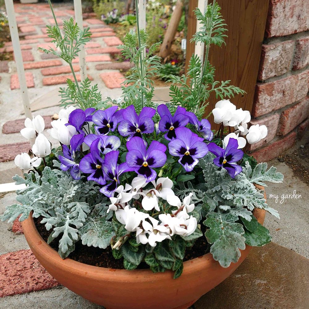 ビオラ、シクラメン、シロタエ…後ろの背の高い子は何でしょう?🤗