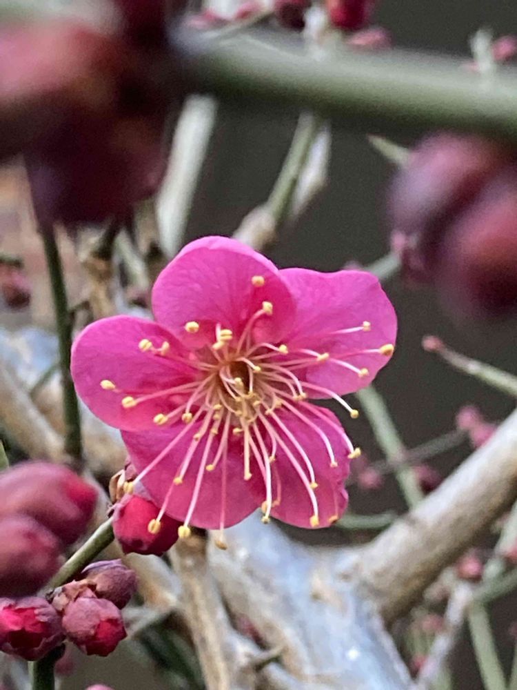 紅梅さんですか、とっても綺麗ですね💕盆栽もお好きなのですか?うちは夫が盆栽好きです😊