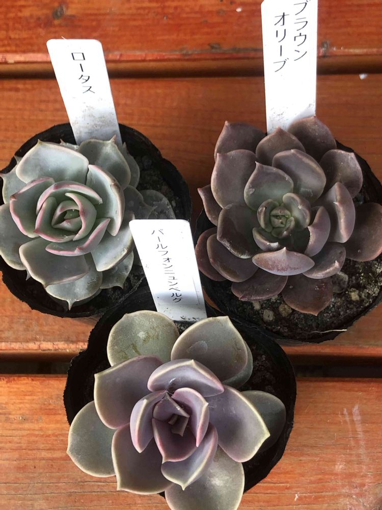 多肉が入荷していて、寄せ植え用に可愛い色の多肉3点お迎えしました😊