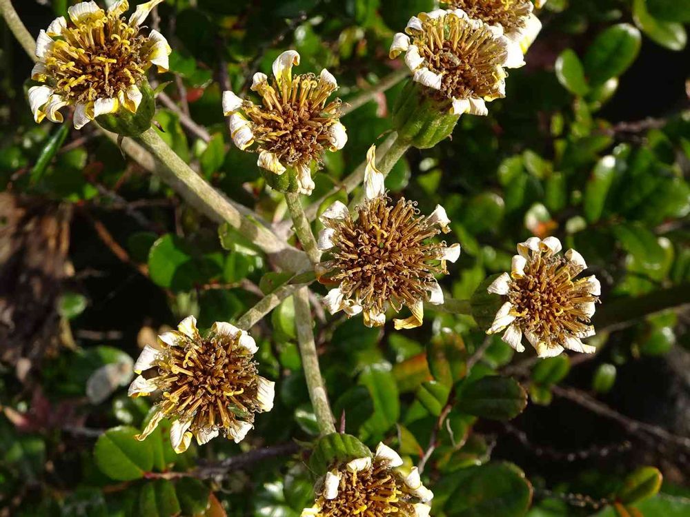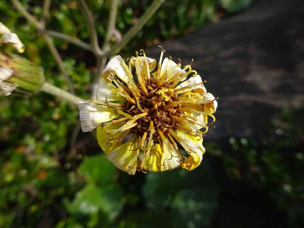 ツワブキの花後❣️-ーこののちは同じキク科のフキと同じ様に❗️タンポポの綿毛のふわふわ感の雰囲気で旅立つと思います♪