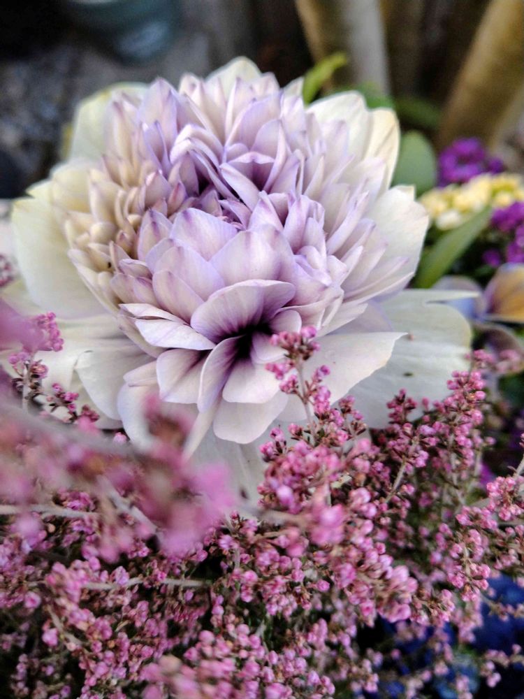 寄せ植えの中のアネモネダブルパステル✨ゆっくり咲いてきました😀🎵
