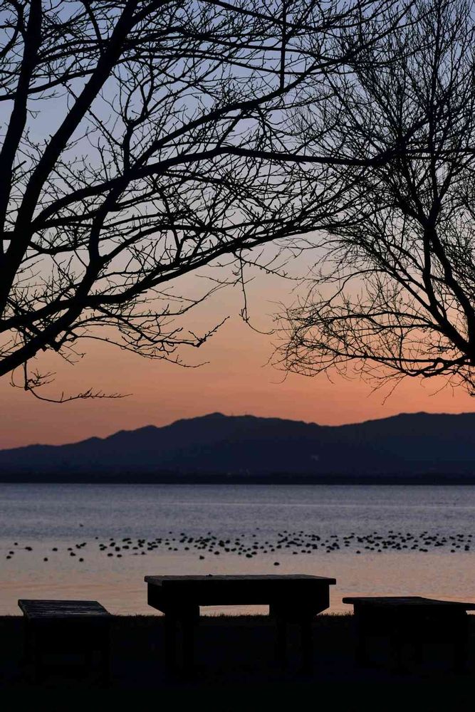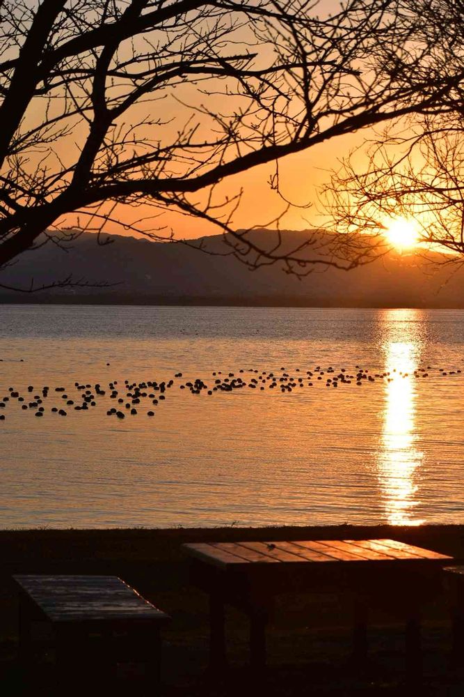 こちらは湖西側なので朝日🌅が綺麗で、あのベンチは湖東側なので夕陽が綺麗です✨