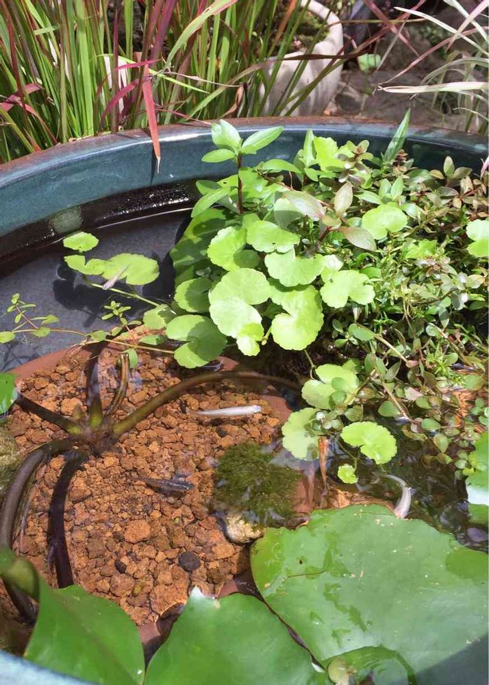 スイレン鉢を見ると👀水面が下がっているようですが、私は朝方にジョロで水が溢れるまでかけてやります(*^_^*)その後に、メダカの餌を与えています!メダカは喜んで食べてくれますよ(*^_^*)