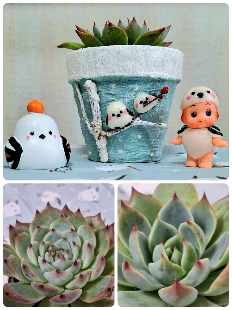 ↘️シマエナガちゃんリメ鉢に植えてある、エケベリア桃太郎です。✨