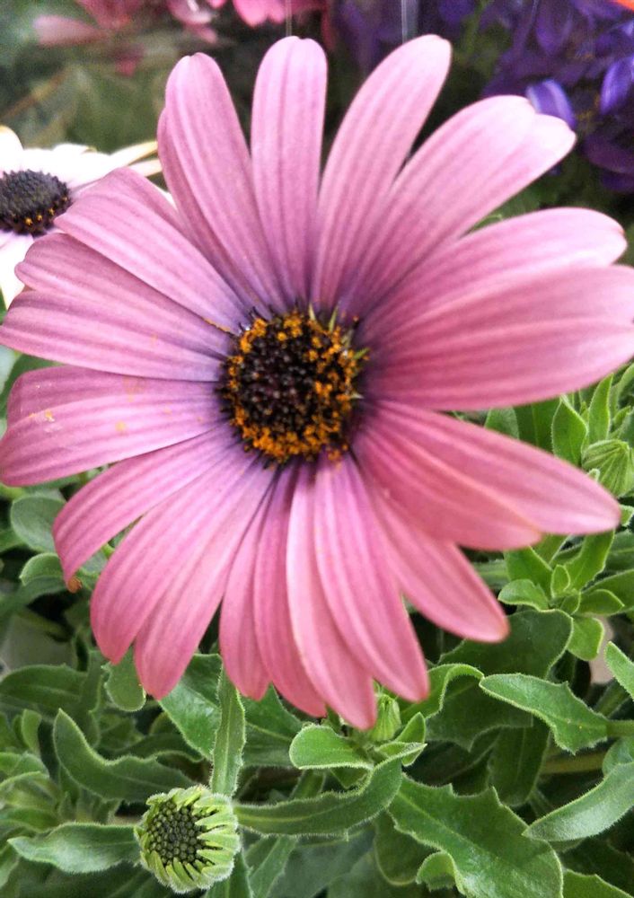 オステオスペルマムのピンク、シベの部分に、少し青があって、美しいです🩷🩷🩷💓💙