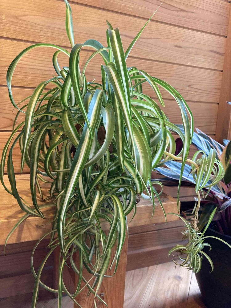 オリヅルランボニー。子株いっぱいワサワサで鉢が見えない🫥
